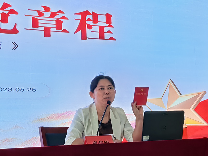 本次专题党课主题为“《中国共产党章程》(修订版)领读”,童莹娟老师围绕“为何修订党章”“总纲部分的修订”“条文部分的修订”,就党章修订的历史背景、修订的内容与现实意义、习近平新时代中国特色社会主义思想的科学内涵与历史定位等进行了着重阐述,并向与会人员提出了“为何要入党”“什么人可以入党”“党员应该成为什么样的人”的思考题目。