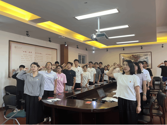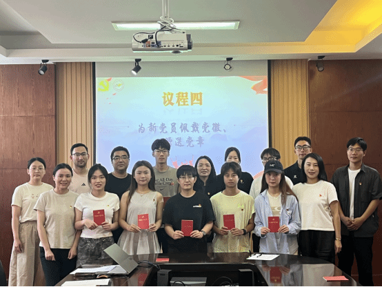 活动中,与会党员为新党员佩戴党徽、赠送党章。鲜红的党徽在胸前闪耀,沉甸甸的党章传递着责任与嘱托。在钭娅老师带领下,全体党员庄严宣誓,铿锵誓言回荡会场,彰显了体院党员队伍的蓬勃朝气与坚定信念。