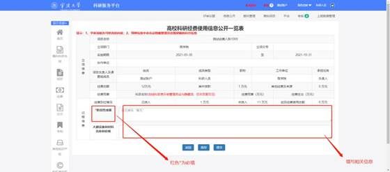 3. 进入信息公开一览表,按要求填写阶段性成果等相关信息;如果项目已结题,需要填写结题相关信息。标注星号为必填项。信息填写完成后点击提交完成信息公开。如果经费有问题请联系财务处:87609049。