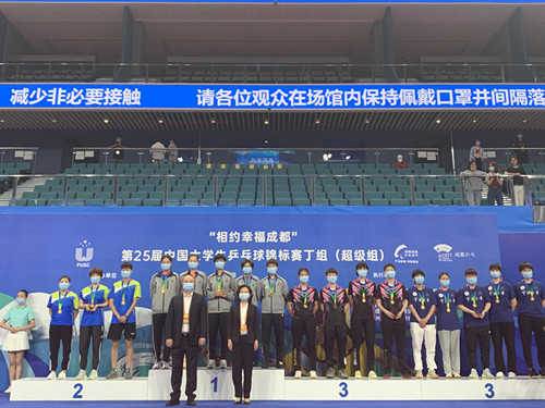 在共有26支各高校参加的情况下取得了女子团体季军、朱思冰女子单打第五名的好成绩。本次比赛是中国大学生锦标赛中水平最高的一个赛事组别,其中不乏许多国家队的现役队员,比赛难度可想而知。我校乒乓球队派出了朱思冰、钟誉竹、詹卓雅、谢俊秋、刘斯雨五名女队员参加,队员们敢打敢拼,在领队童莹娟、教练张伟兵、邵诗蕊的带领和指导下,团结一致取得了此次满意的成绩。