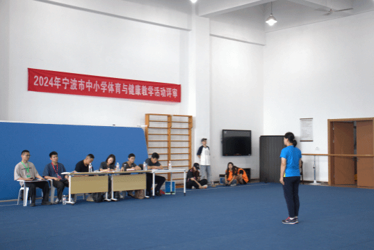 副院长赵亮、体育学系主任王东石以及宁波市各县市区的20余名体育教研员、教学名师和33名参赛选手。评审活动由宁波市体育教研员马杨旭主持。