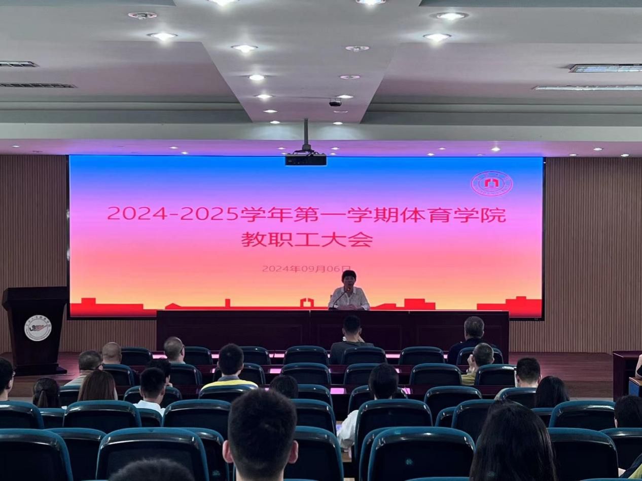 会议首先介绍了新入职的教职员工并表示热烈的欢迎,寄予新学期新希望。接着学院党委书记传达了2024年暑假中层领导干部扩大学习会议精神,向全院教职员工汇报了暑假期间在学生工作、教学科研、运动竞赛、党团群等方面的工作,并对新学期的各项工作进行了部署。