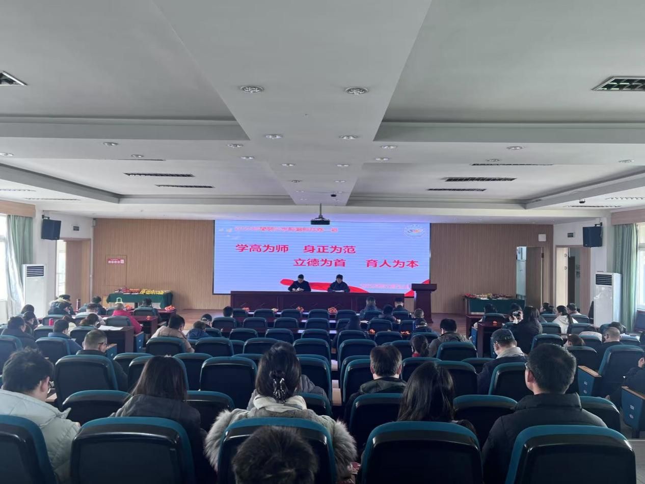 二楼报告厅召开。学院领导班子成员与全体教职员工参加会议。