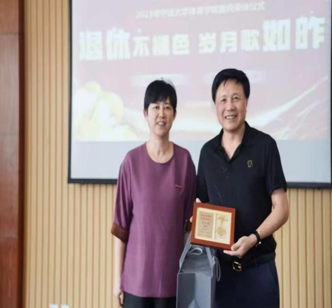 仪式在温馨的氛围中拉开帷幕。学院领导深情回顾了退休教师的工作历程,陈老师的身影,早已刻在学院发展的年轮里。学院领导高度肯定了退休教师 “以体育人、甘于奉献” 的精神,称其为“学院最宝贵的财富”。