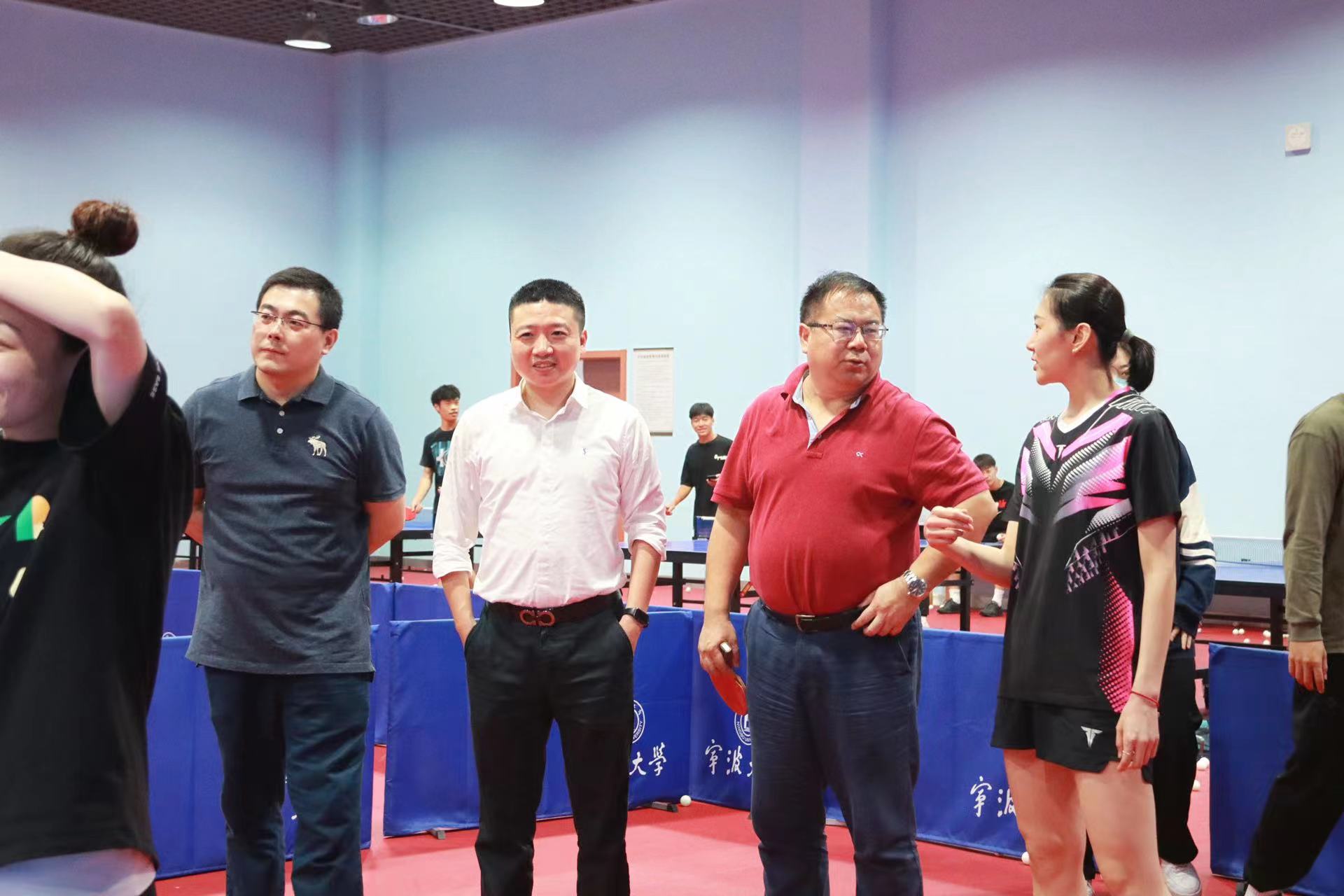 6月10日下午,宁波大学副校长汪浩瀚来到周亦卿体育馆乒乓球馆,与体育学院2020学硕班的同学们用“小球”带动交流,用赛事增进情感。宁波大学党校办副主任徐崇贤,体育学院执行院长顾耀东,竞赛训练中心党支部副书记邵诗蕊,2020学硕班班主任张妍参与本次活动。