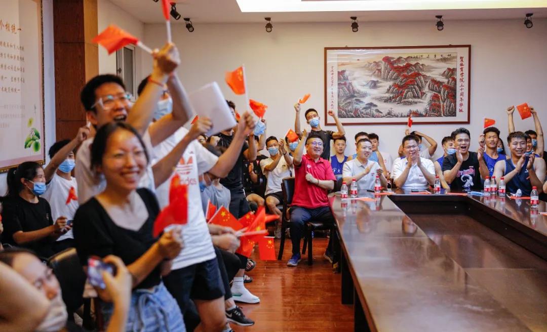 7月29日上午11点,校党委书记朱达、副校长赵全军与石智勇同学视频连线。朱达在连线中说:“智勇同学,为祖国摘得金牌,果然鸿运当头啊!”
