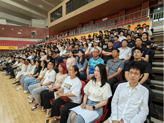 为深入学习习近平总书记在全国教育大会上的重要讲话精神,引导全体师生党员准确理解把握教育强国建设的战略任务和重大举措,在校党委的统一部署下,6月11日下午,体育学院党委组织师生党员,齐聚周亦卿体育馆分会场,共同观看教育部党组书记、部长怀进鹏主讲的《深入学习贯彻习近平总书记关于教育的重要论述,落实全国教育大会精神》视频课程。院党委班子成员及270余名师生党员、部分入党积极分子代表共同参加学习。