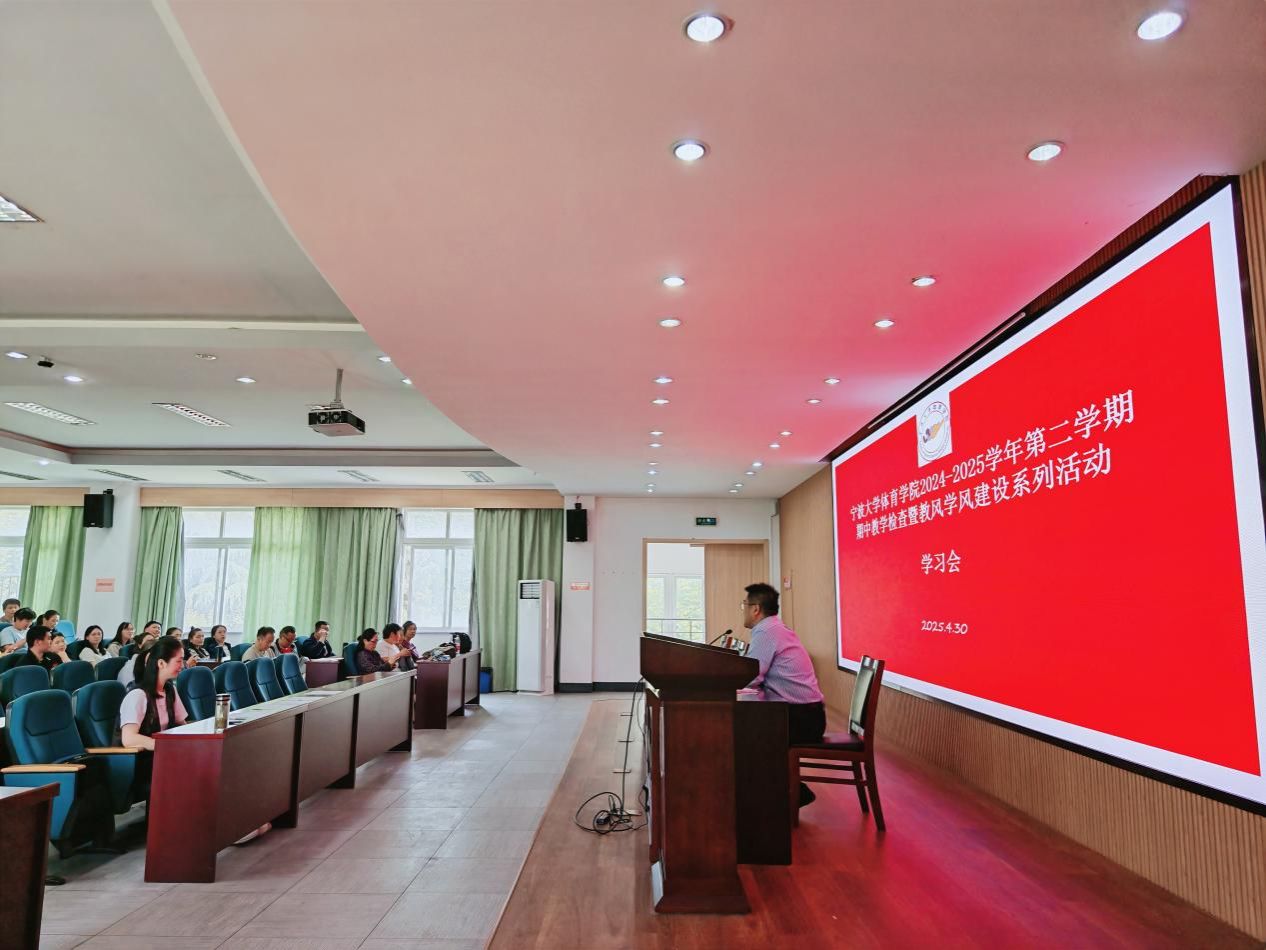 为深入贯彻落实新时代教师队伍建设要求,扎实推进师德师风建设,规范教育教学管理,4月30日,体育学院组织召开师德师风建设暨教学规范专题学习会。会议由学院副院长赵亮主持,全体教师参会。