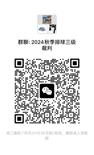 (2)其它学院同学在报名时间内扫码入群(必须入群),11月20日将在群内在线填写报名信息表。11月21日下午14:00-16:30将费用交到体育学院司令台A-104办公室梁志强老师处,视为报名成功。特别提示,裁判考试报名一旦缴费后,无论什么因素,相关费用将无法退还。
