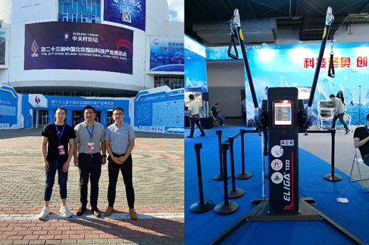 我校体育学院赵亮教授一行受邀参加科博会并在“科技冬奥展区”展示了科技助力冬奥项目“冬残奥运动项目国际化训练平台关键技术研究与应用”的研发成果“T232无轨迹数字化训练系统”(图二)。该训练系统依托中国残疾人体育运动管理中心,由宁波大学体育学院联合匈牙利罗兰大学共同开发。它可以根据运动员特定训练需求,自由调节运动方向,实现全方位无轨迹训练。利用伺服电机作为动力源,可进行多模式运动及训练数据实时监控,实现多样化的力量训练模式。通过数字化控制,实现训练数据可视化、可存储、可分析、可长期跟踪对比,真正意义上实现了体能训练数字化。