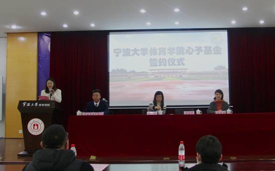 1月22日,宁波大学体育学院“心予奖励基金”签约仪式在体育学院大楼报告厅隆重举行。该仪式由蒋健保教授主持,出席仪式的领导和来宾有:宁波大学发展联络处副处长、校友工作办公室副主任、地方服务与合作处副处长姜煜洌老师;宁波大学体育学院党委副书记、纪委书记金一波教授、宁波大学2012届体育教育专业优秀校友、浙江摩根兄弟科技有限公司总经理唐凯杰先生的夫人顾晓琳女士,以及宁波大学2013届体育教育专业宁波地区的校友代表、宁波大学体育学院相关部门主要负责人和师生代表等。