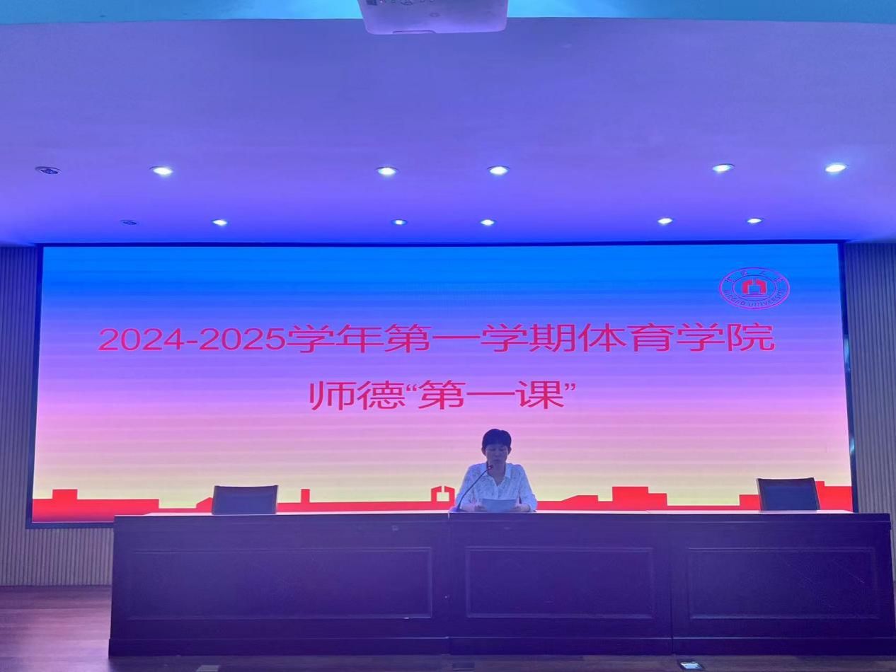 9月6日上午,2024-2025学年第一学期全院教职工大会在体育学院二楼报告厅召开。学院领导班子成员与全体教职员工出席参加了会议。会议由学院党委书记童莹娟主持。