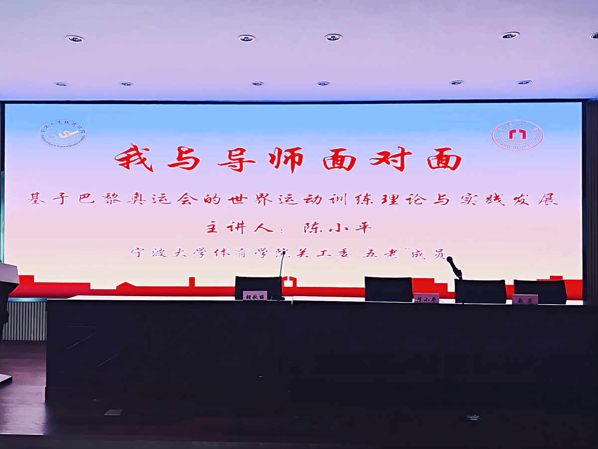 10月11日下午,体育学院在二楼报告厅顺利举办了题为“基于巴黎奥运的世界运动训练理论与实践的发展”专题讲座。本次讲座是体育学院“我与导师面对面”系列活动之一,由共青团宁波大学体育学院委员会、体育学院学生会、体育学院关工委联合承办,特别邀请了国家体育总局体育科学研究所特聘研究员、博士生导师,宁波大学关工委“五老”骨干陈小平教授担任主讲。讲座由学院副院长赵亮主持,学院党政领导班子、青年教师和学生共100余人参加。