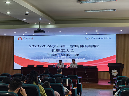 9月8日,宁波大学体育学院组织“开学师德第一课”,院党委书记童莹娟作宣讲,全体教职工参加了学习。