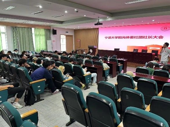 为加深阳光体委和各体育社团彼此之间的沟通和交流,10月12日中午,宁波大学阳光体委社长大会在体育学院二楼报告厅顺利进行,参会人员有阳光体委秘书处全体成员和各体育社团负责人,由阳光体委负责老师陈奂老师主持本次会议。