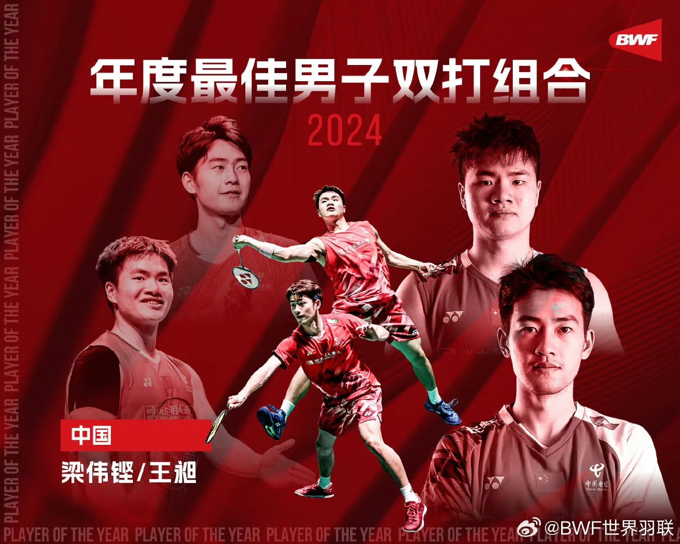 12月9日晚,2024国际羽联世界巡回赛年终总决赛晚宴及颁奖典礼在杭州举行,国际羽联揭晓了年度最佳奖项的获奖名单。宁波大学体育学院2023级运动训练本科生王昶及其搭档获得“年度最佳男子双打组合”。