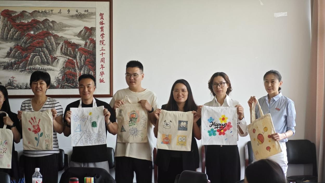 为了提升体育学院教职工的幸福感和创造力,体育学院分工会以“幸福手绘,快乐自创”为主题,于5月15日在体育学院408会议室组织了一场DIY手绘帆布袋活动。学院党委书记童莹娟、副书记胡秋丽及10余名教师共同参与,展现指尖上的艺术,创造属于自己的幸福时刻。