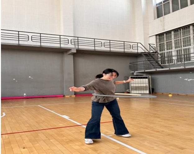 个人比赛中,随着一声令响,加油!加油!”比赛赛场瞬间淹没在震耳欲聋的口号声和呐喊声中,跳绳比赛中,选手们身姿矫健,动作灵活,手中的跳绳在空中划出一道道优美的弧线,现场气氛热烈非凡;旋转呼啦圈比赛中,老师们各展风采,有的弯腰、有的低头,利用各种技巧保持呼啦圈的平衡和持久旋转;踢毽子比赛中,教职工们以优雅灵活的身姿与跳跃起伏的毽子共舞,绘出了一幅活力四射、其乐融融的图卷;飞盘掷准比赛中,老师们摇身一变成了身手不凡的“飞盘高手”,引来阵阵惊叹!