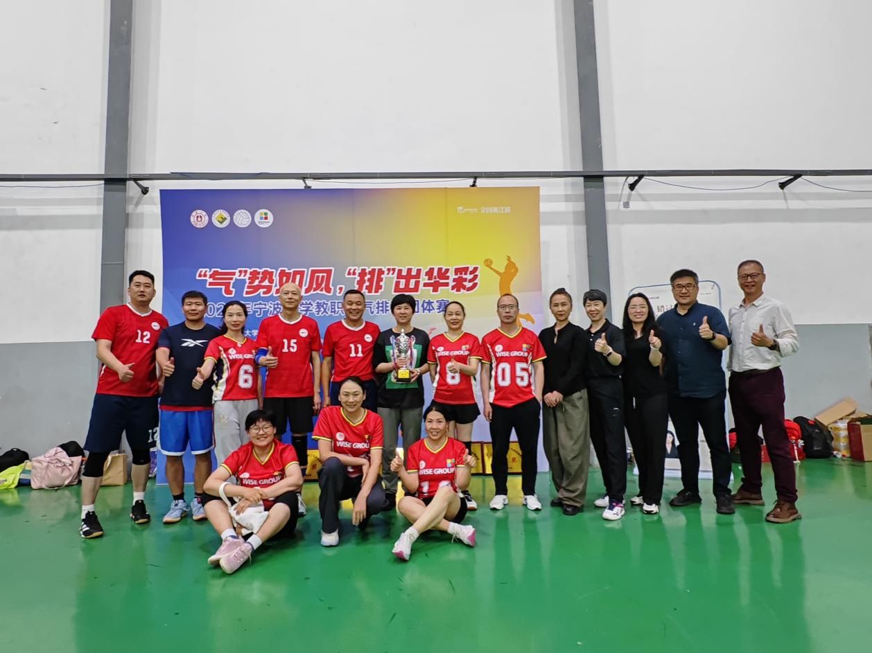 5月21日、28日,宁波大学教职工气排球团体赛在风雨球馆火热开展。体育学院分工会以“老将传技·实战教学工作坊”项目为依托,充分发挥关工委“传帮带”作用,最终斩获赛事第二名,展现出体育学科特色育人成效与团队协作精神。